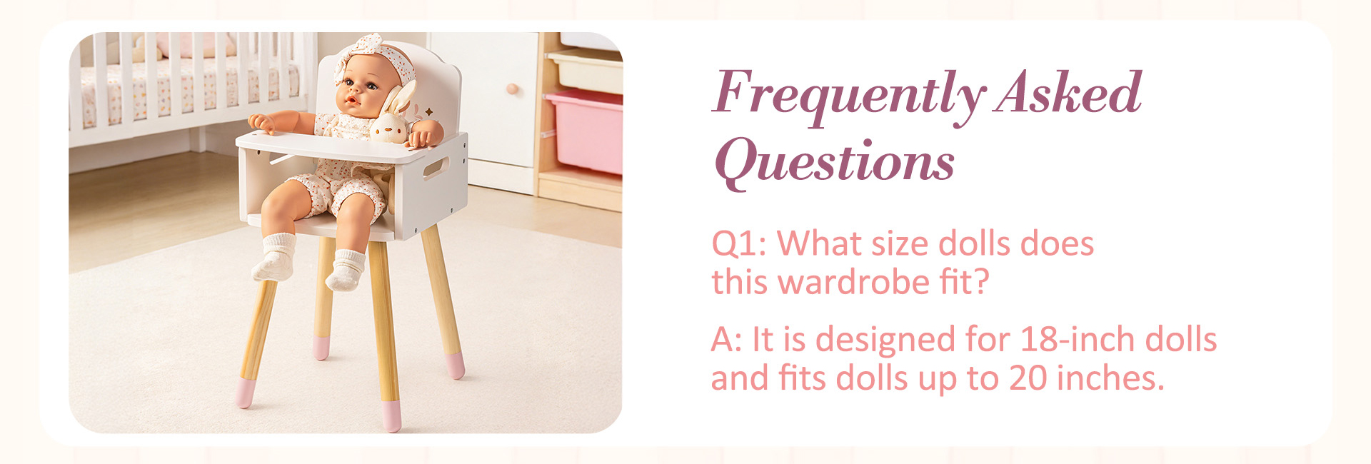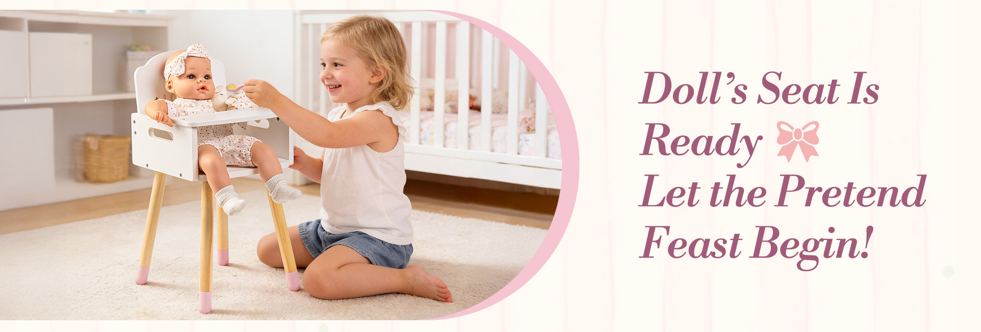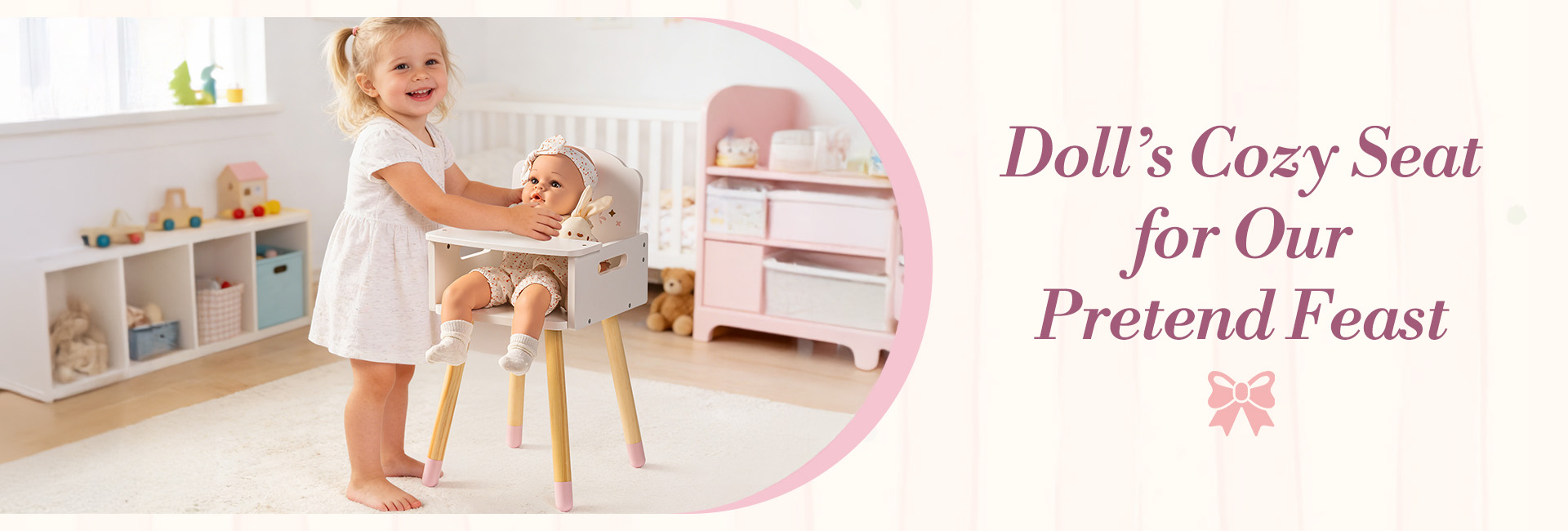 - Taille parfaite pour un plaisir de jeu sans fin avec les poupées--Mesurant 24×24×49 cm (9.4×9.4×19.3 in), cette chaise haute pour poupée convient aux poupées jusqu'à 20 pouces. En tant que jouet de chaise haute pour bébé conçu pour les enfants de 3 ans et plus, c'est plus qu'un simple jouet—c'est une porte d'entrée vers des soins imaginatifs avec leurs poupées bien-aimées, et n'est pas destiné aux vrais nourrissons.