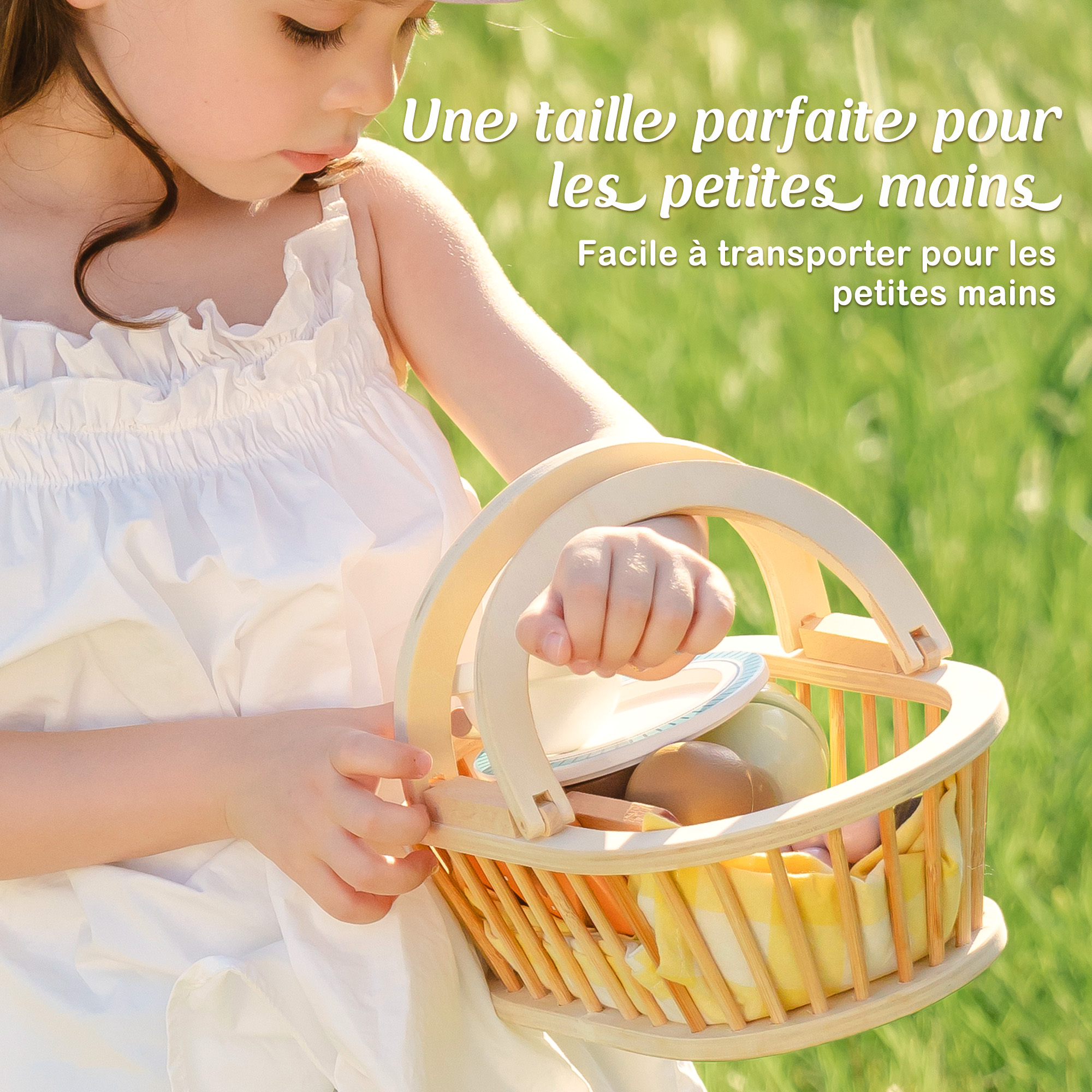 - Pique-nique créatif et amusant : Avec une variété de nourriture et un panier à remplir, les enfants peuvent organiser des pique-niques imaginaires, partager « café et gâteau », ou jouer à manger en plein air avec des amis et la famille - encourageant la créativité, le récit et l'interaction sociale.
