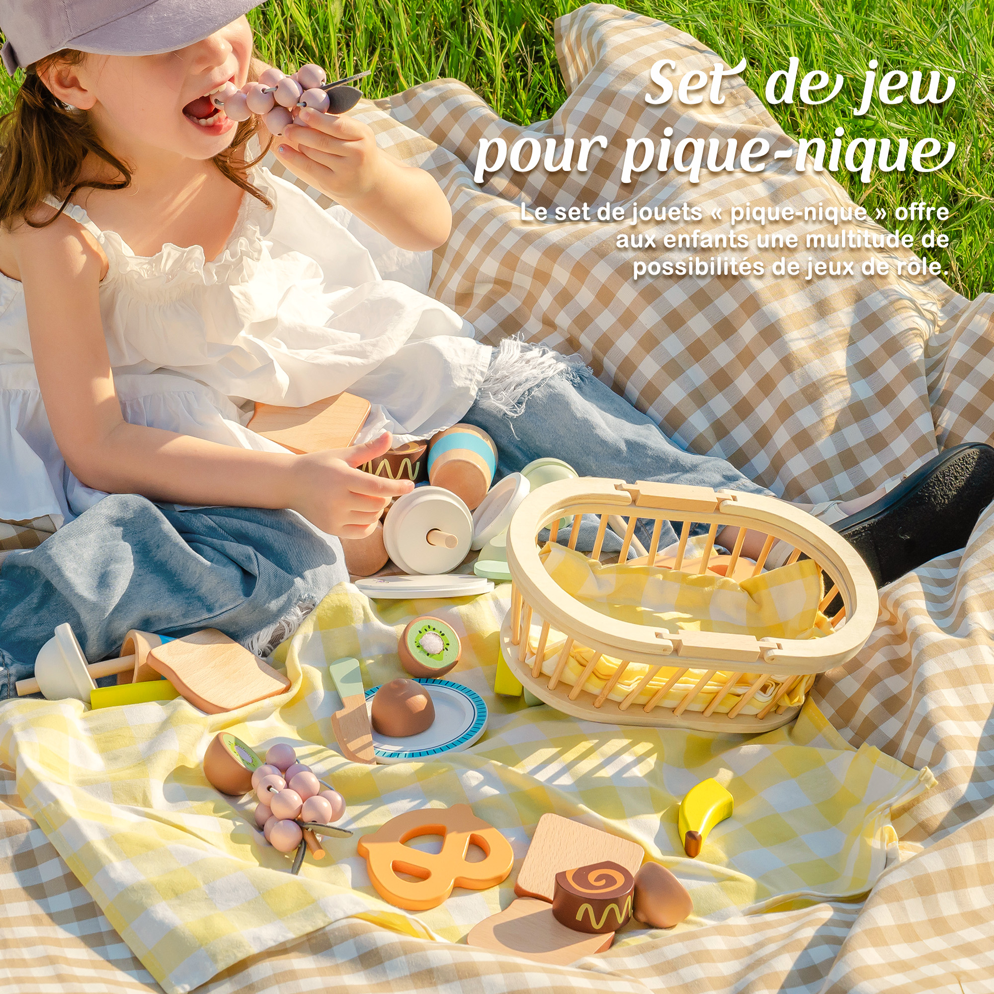- Cadeau parfait pour les jeunes amateurs de nourriture : Léger et facile à ranger avec le panier inclus, cet ensemble de nourriture de jeu de pique-nique est idéal pour les anniversaires, les vacances ou les jeux sans écran au quotidien. Un ajout merveilleux aux cuisines imaginaires ou aux jeux entre amis.
