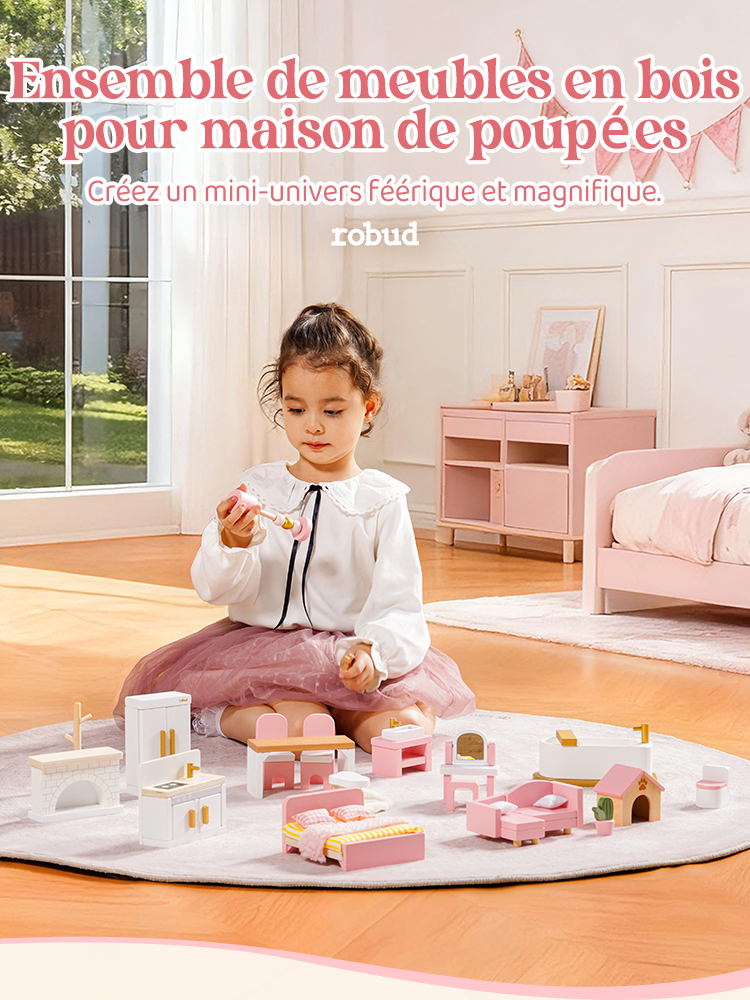 ENSEMBLE DE MEUBLES DE MAISON DE POUPEE DE HAUTE QUALITE : Le mobilier miniature ROBUD comprend un salon, une chambre, une salle de bain, une cuisine et une salle à manger. Méticuleusement conçu avec des matériaux de haute qualité, il se dresse comme un gardien de l'innocence des enfants.