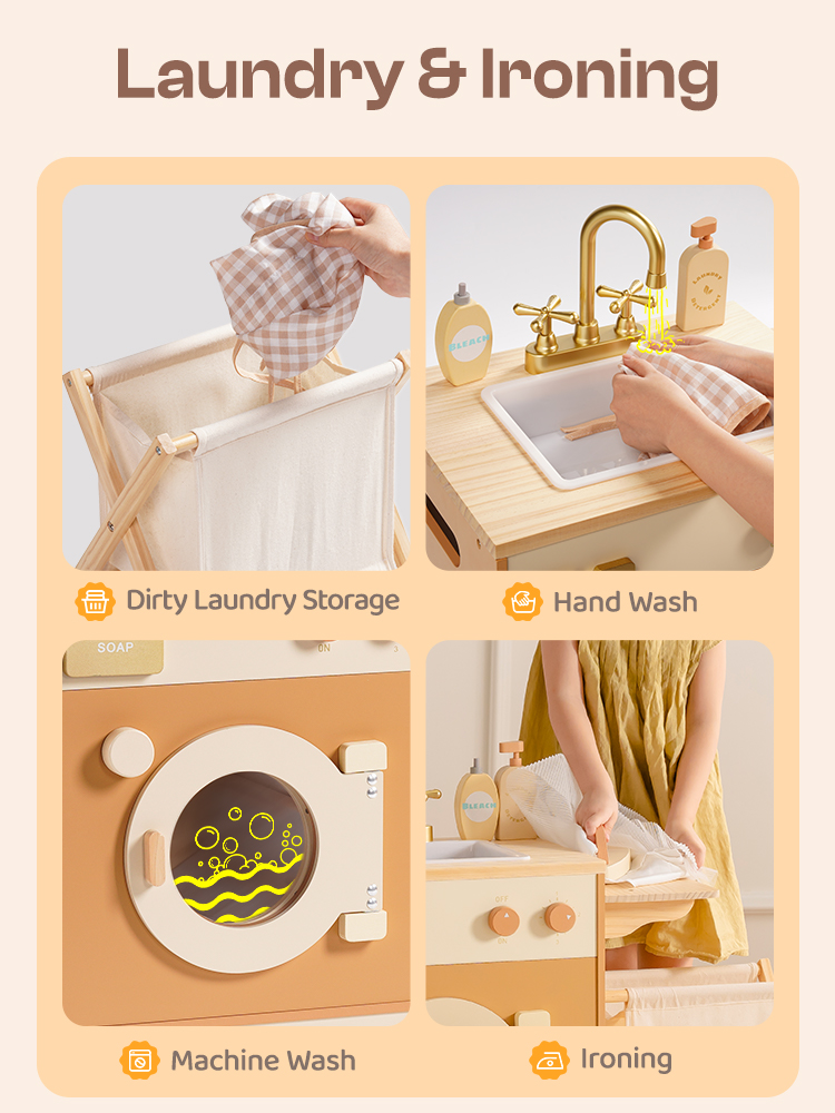 - 🌊ACCESSOIRES ABONDANTS : Cette machine à laver est conçue avec une variété d'accessoires pour améliorer l'expérience de jeu des enfants. Elle comprend de la lessive, de l'eau de Javel, du savon et une boîte à savon. De plus, elle est livrée avec une planche à repasser, un fer à repasser et un panier à linge sale, fournissant tous les accessoires nécessaires aux activités de lavage quotidiennes. Préparez-vous à ce que les enfants se lancent dans une aventure de jeu de lessive ! (Vêtements non inclus)