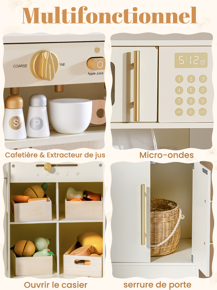 - LE CADEAU PARFAIT POUR LES GARÇONS ET LES FILLES : Que ce soit pour des anniversaires ou des vacances, cette cuisine de jeu en bois est le cadeau idéal pour les enfants qui adorent le jeu de simulation. Elle allie style et fonctionnalité, permettant aux enfants de libérer leur imagination dans la cuisine.