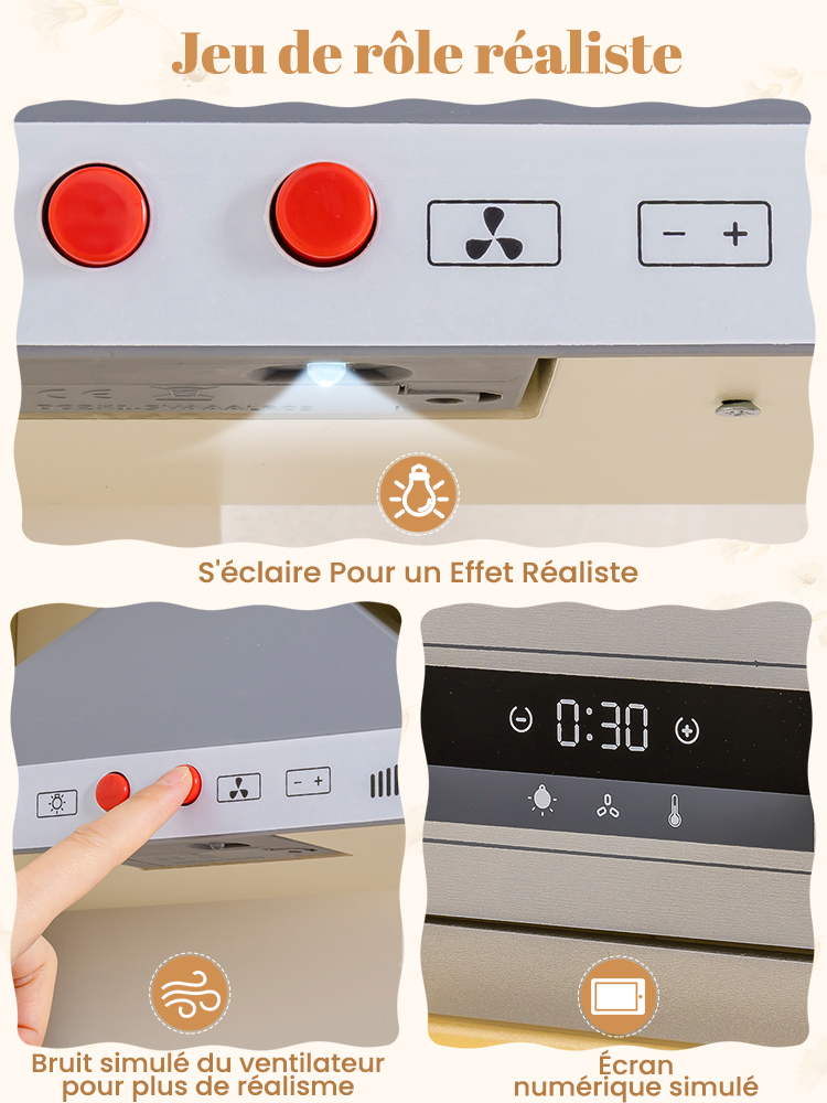 - LUMIÈRES ET SONS DONNENT VIE AU JEU DE RÔLE : Cette cuisine jouet dispose de boutons vocaux, d'un affichage numérique et de sons de cuisson simulés pour rendre le jeu de simulation vivant. Les enfants peuvent « cuire », « laver la vaisselle » et « faire la lessive » comme des grands, stimulant une imagination sans fin.
