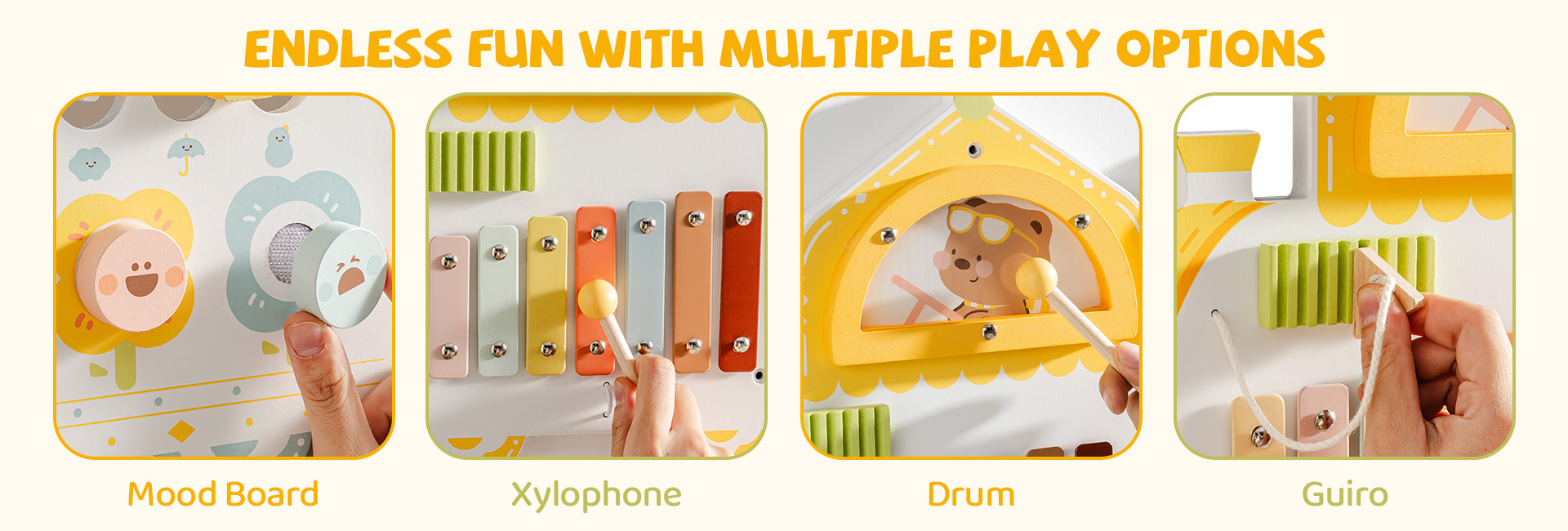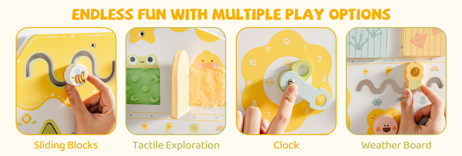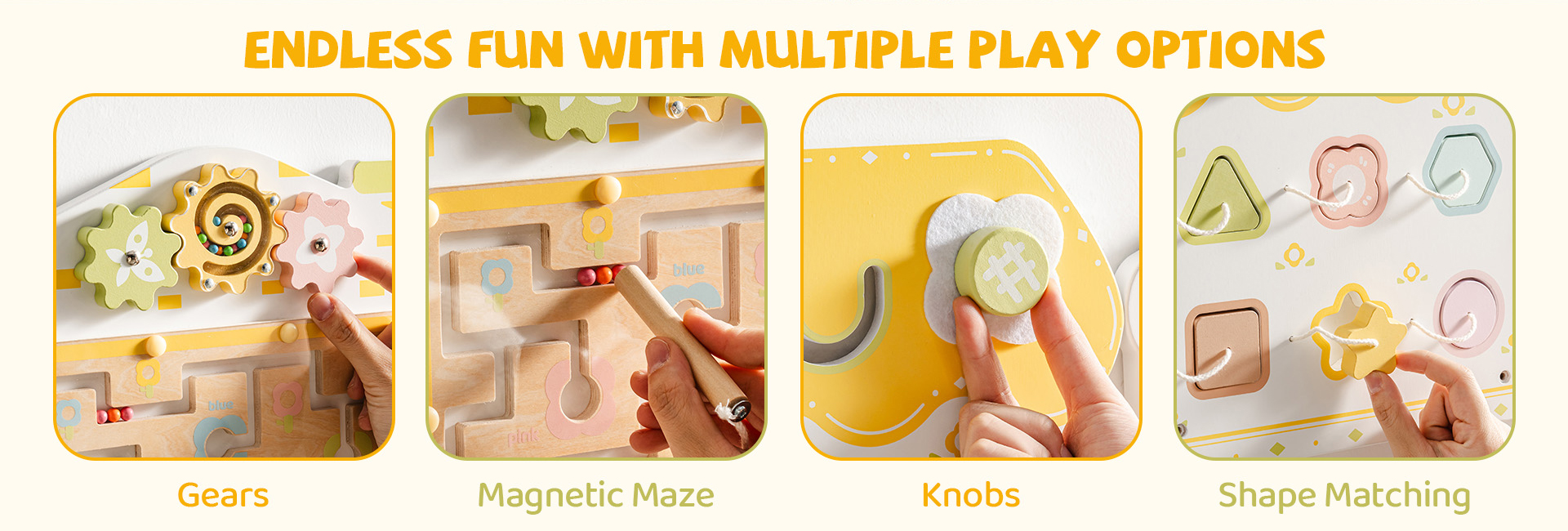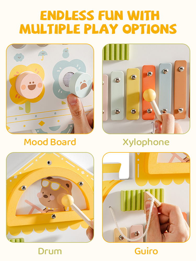 Matériaux de qualité supérieure et sûrs - Ce tableau de jeu éducatif est fabriqué en bois de haute qualité et recouvert d'une peinture non toxique, ce qui le rend non seulement sûr et fiable, mais aussi durable. Un système de montage mural robuste garantit que le tableau de jeu est solidement fixé, offrant aux enfants un espace de jeu stable et sûr.